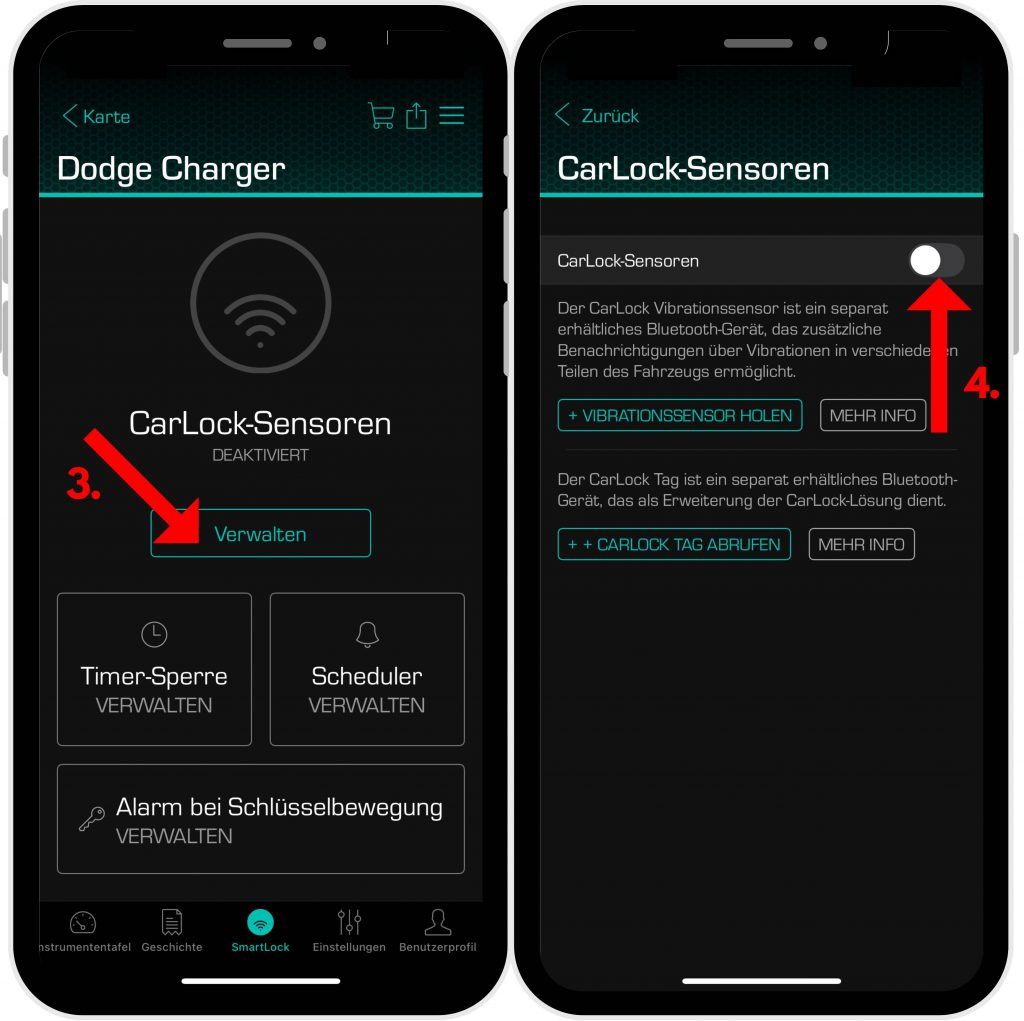 4. Schalten Sie den CarLock-Sensoren-Schalter auf „EIN.“