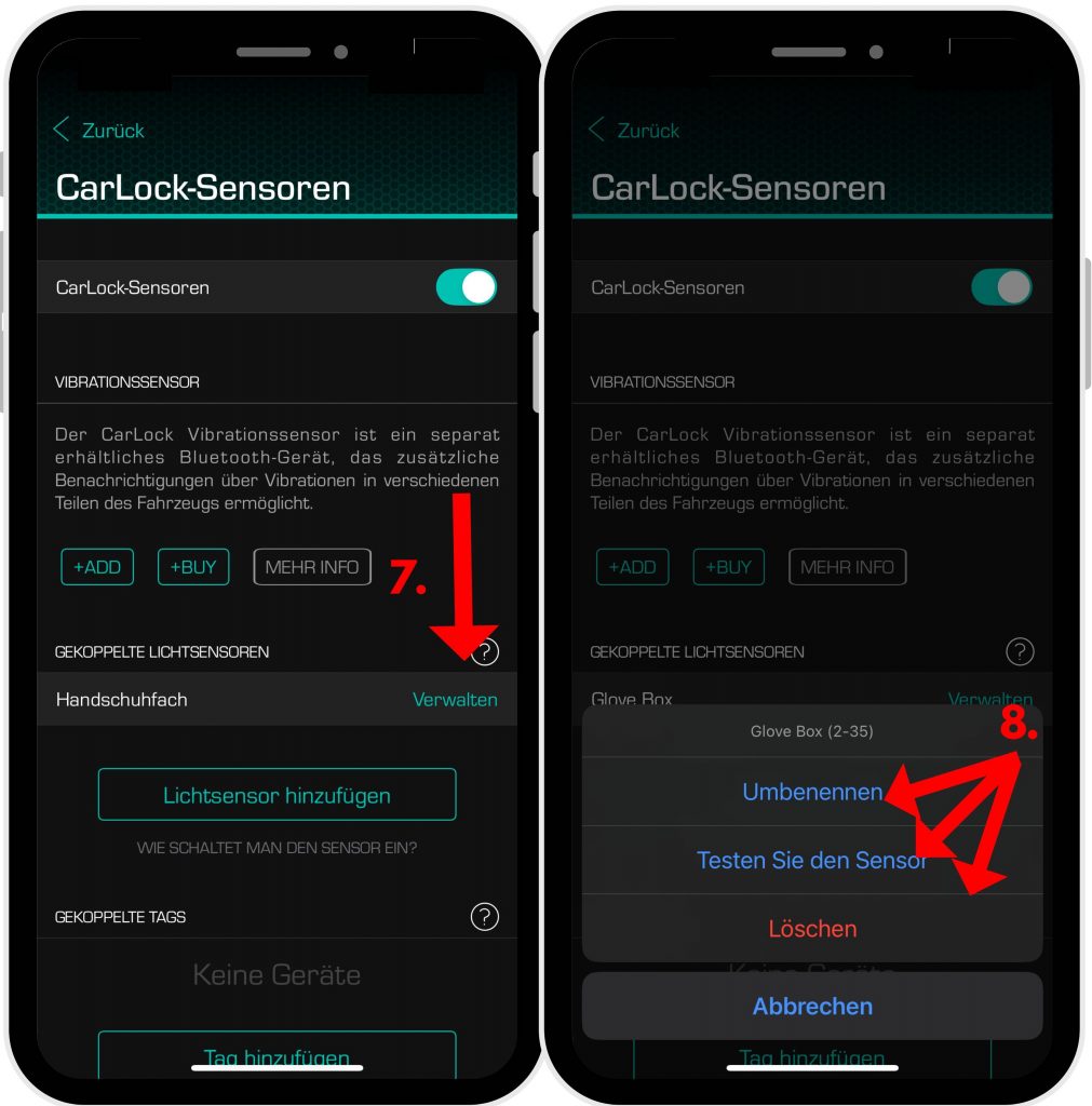 So Koppeln Sie den Lichtsensor in der CarLock-App