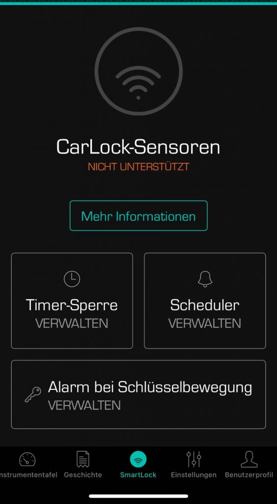 - die CarLock-Sicherheit aktiviert ist (die „Sperren“-Schaltfläche auf dem Kartenbildschirm der CarLock-App muss gesperrt sein);