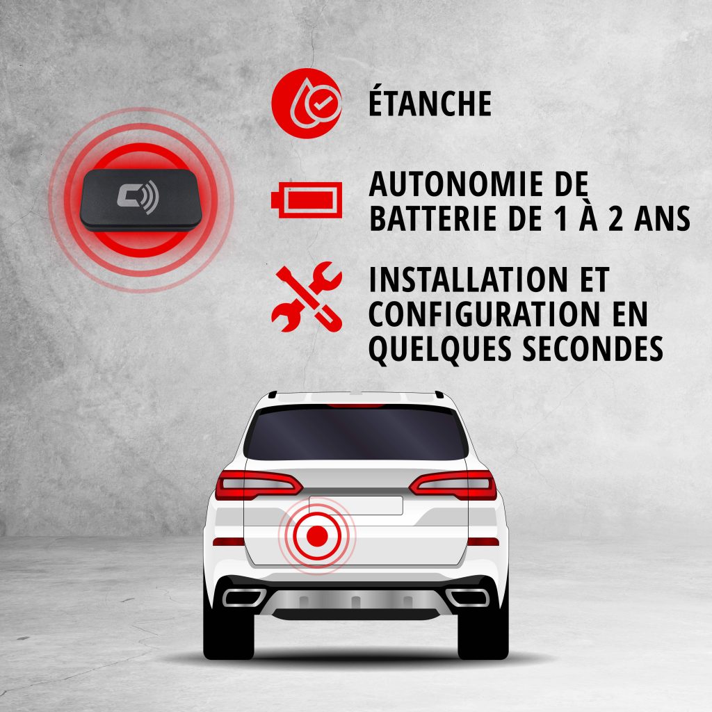 Entièrement étanche, il peut être facilement placé dans la boîte à gants de votre voiture ou dans tout autre espace fermé grâce à l’adhésif double face inclus. Il est totalement imperméable et offre une autonomie de batterie de 1 à 2 ans.